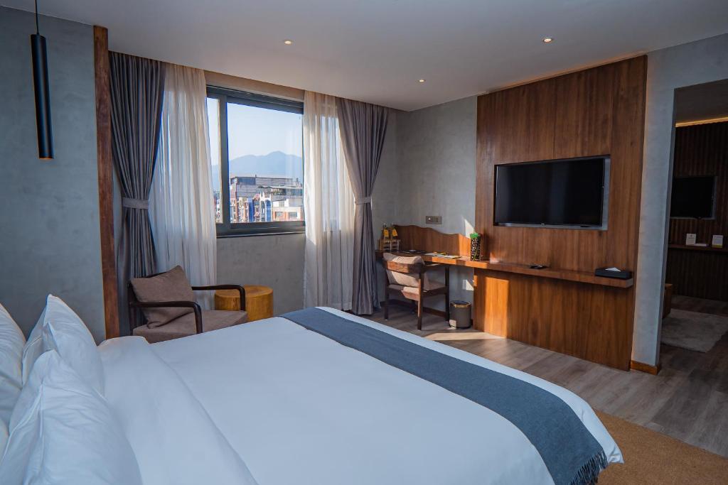 Hotel Barahi Kathmandu is an upscale oasis featuring chic post-modern European design and front-row views of the sprawling city.